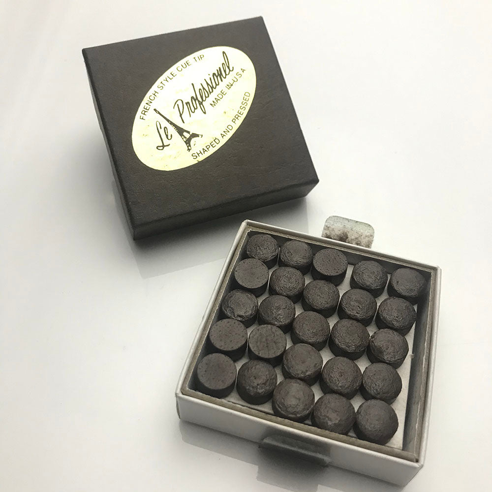 Le Professional ("Le Pro") tips are an industry standard, crafted from vegetable-tanned oak leather. The Le Pro tip has a special protective coating that seals and preserves the leather until the cue is ready for play.